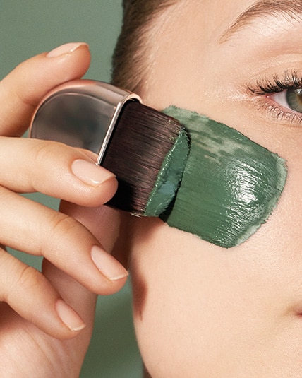 Let dry for 10 minutes, allowing the mask to shift from a deep kelp green to a lighter hue. A tingling effect may be experienced as skin is purified.