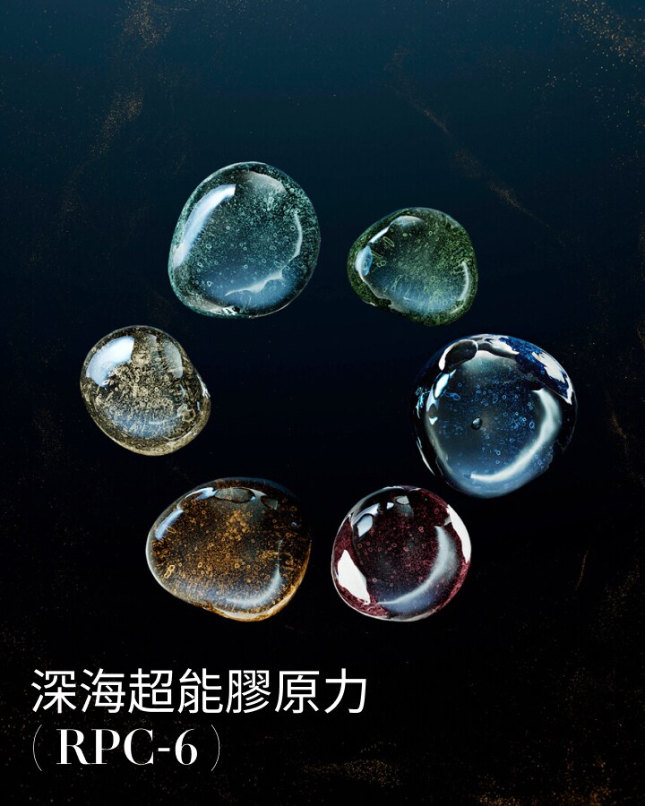 針對眼周脆弱肌膚,蘊含深海超能膠原力(RPC-6),由內滲透保濕澎潤因子,恢復肌膚彈性強韌支撐,重現年輕緊緻輪廓。